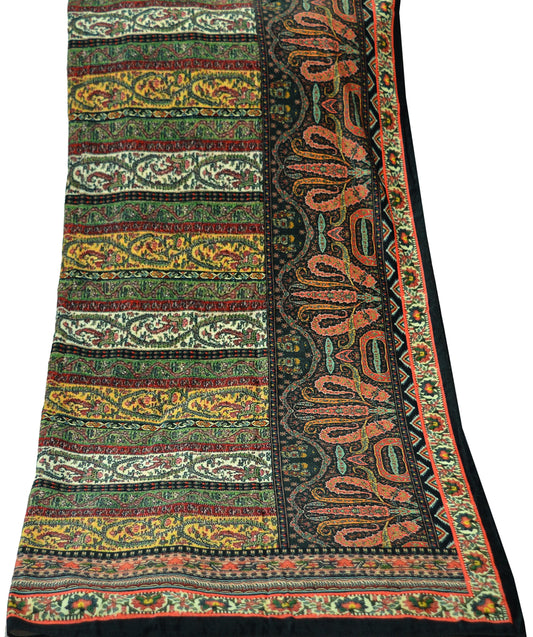 Indian Vintage Bottle Green Dupatta Long Stole Art Silk Woven Brocade Indian Scarves Veil Scarf Wrap Hippie Boho Soft Floral