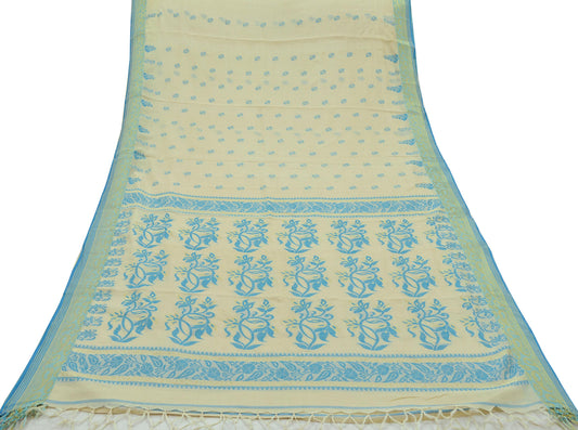 Indian Vintage Sari Cream Pure Khadi Silk Printed Saree Fabric 6yard Sewing Craft DressMaking Soft Floral