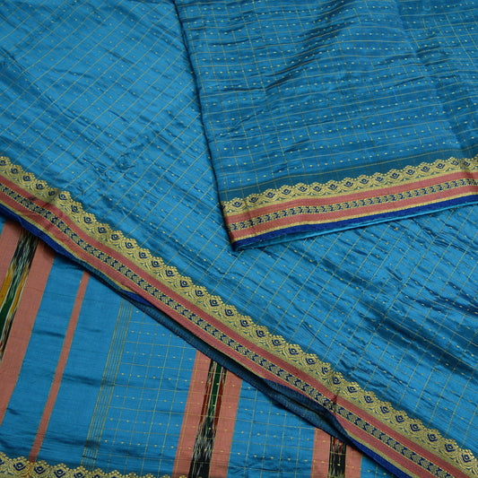 Indian Vintage Sari Blue Mysore Silk Woven Sarees Craft Fabric 5Yd Ethnic South silk Dress Making Crafting Upcycle Quilting Zari Border