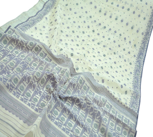 Indian Vintage Sarees Ivory Pure Cotton Hand Woven Jamdani Sari 5yd Ethnic Floral Craft Fabric Dress making Upcycle Crafting Quilting
