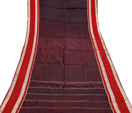 Indian Vintage Sari Red & Maroon Mysore Silk Woven Saree with Zari Border 5 Yards Soft Craft Fabric Upcycle, Quilting, Dressmaking