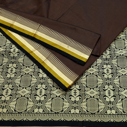 Indian Vintage Sari Black & Brown 100% Pure Silk Hand Woven Sarees Craft Fabric 5Yd Ethnic Sewing Dress making Crafting Quilting Upcycle