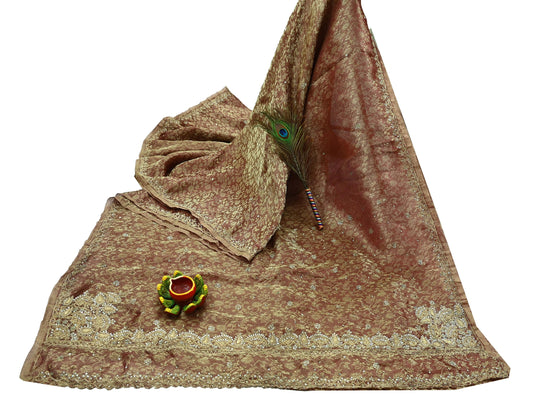 Indian Vintage Sari Golden Tissue Hand Embroidered Sarees Craft Fabric 5Yd Sewing Soft Ethnic Zardozi/Zari Dress making Crafting Upcycle