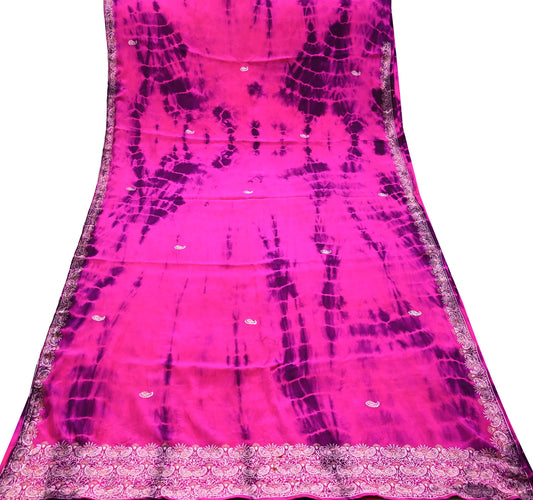 Indian Vintage Sari Pure Crepe Silk Hand Embroidered Sarees 6yd Sewing Craft Fabric Ethnic Wrap Upcycle Quilting Crafting Dress Making