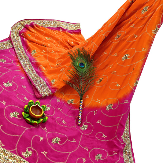 Indian Vintage Heavy Orange Dupatta Pure Georgette Silk Long Stole Hand Embroidered Scarves Zardozi Wedding Party wear