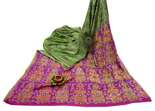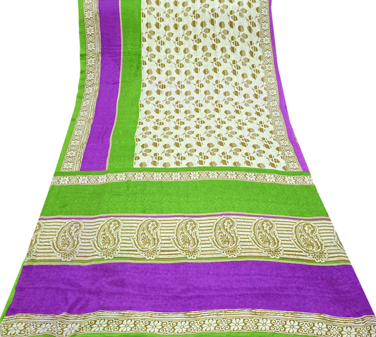 Indian Vintage Sari Green & Purple Pure Georgette Silk Printed Sarees 5Yd Craft Fabric Sewing Quilting Dress making Crafting Dress Designing