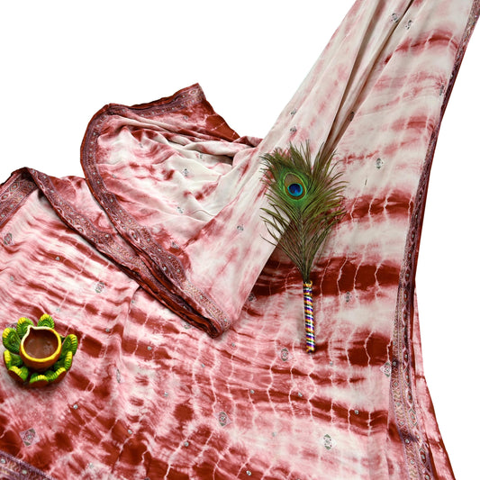 Indian Vintage Saree Pure Crepe Silk Hand Embroidered Tie-Dye Sari Fabric 5yard Sewing Craft Fabric Ethnic Dressmaking Crafting Zardozi Zari