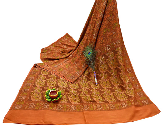 Indian Vintage Sari Orange 100% Pure Silk Hand Woven Sarees Craft Fabric 5Yd Ethnic Sewing Dress making Crafting Quilting Upcycle