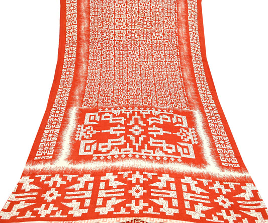 Indian Vintage Sari Red 100% Pure Georgette Silk Block Printed Sarees Sewing 6yd Craft Soft Dress Designing for Crafting Floral
