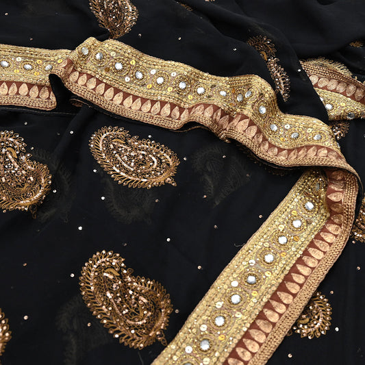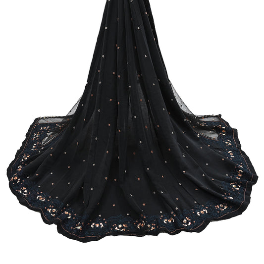 Indian Vintage Dupatta Black Pure Georgette silk Long Stole Embroidered Scarves Stole Veil Wrap