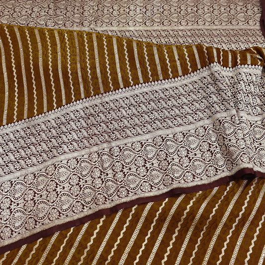 Indian Vintage Brown Dupatta Pure Chiffon silk Long Stole Hand Embroidered Scarves Floral Design Stole Veil Wrap Zari Zardozi