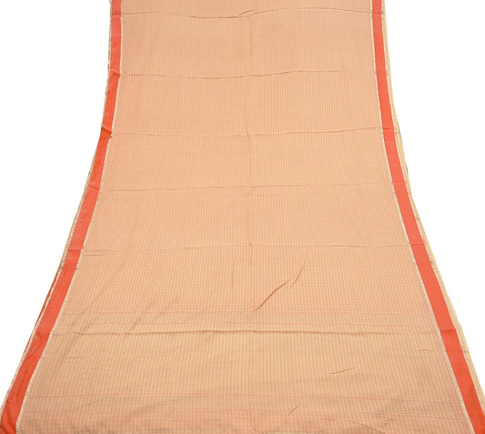Indian Vintage Sari Pink & Orange Hand Woven Printed Sari 100% Pure Silk Sarees Craft Fabric 5yd Soft Zari Dress making Quilting Used