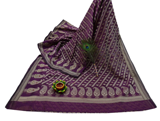 Indian Vintage Sari Purple 100% Pure Silk Hand Woven Sarees Craft Fabric 5Yd Ethnic Sewing Dress making Crafting Quilting Upcycle