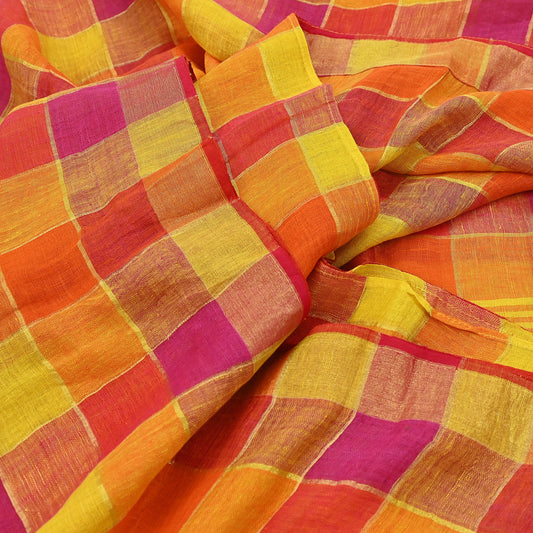 Vintage Purple orange Pure Khadi Silk Saree 5Yd Handloom Indian Sari Soft Fabric Sustainable Craft Textile Boho Dressmaking Material