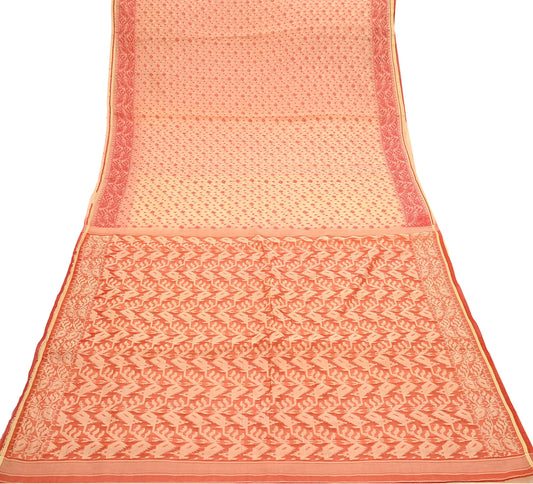 Indian Vintage Orange & Beige Saree Hand Woven 100% Pure Organza Silk Sari Fabric 5Yard Ethnic Floral Dressmaking Crafting Quilting