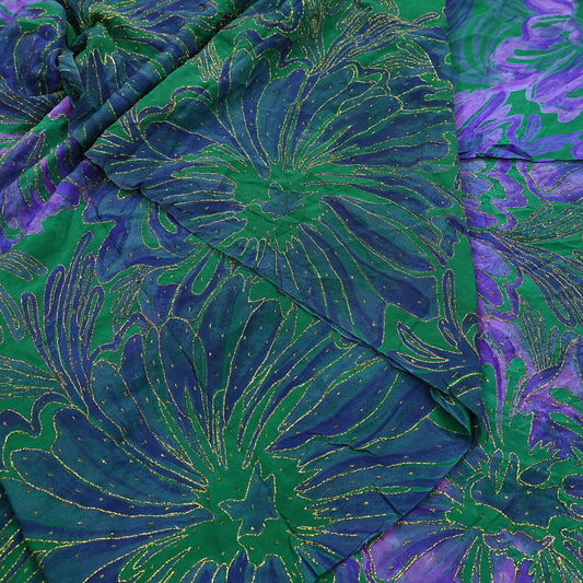 Indian Vintage Sari Green Pure Chiffon Silk Printed Sarees Craft Fabric Sewing 5Yard Soft Light Sari Dress Making Quilting Upcycle Crfating