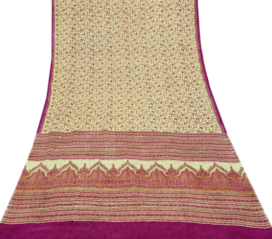 Indian Vintage Ivory & Rani Pink Pure Silk Saree | Floral Printed Fabric | 6 Yards | Craft Silk for Sewing, Quilting, Dressmaking, Upcycling