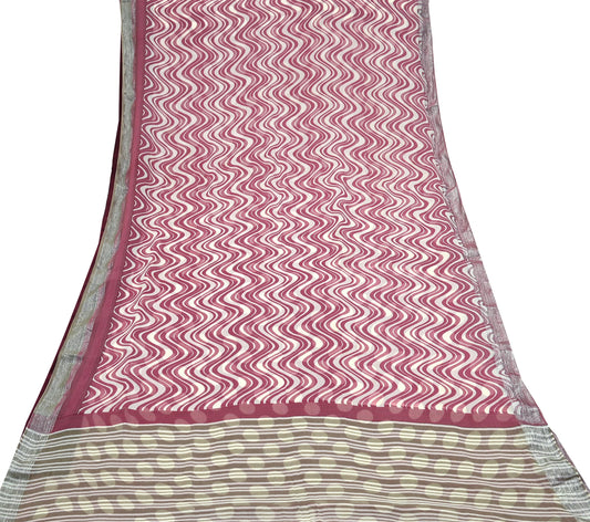 Indian Vintage Pure Chiffon Silk Saree | Printed Abstract Design | 5 Yards | Sheer Soft Fabric for Sewing, Dressmaking, Craft Projects