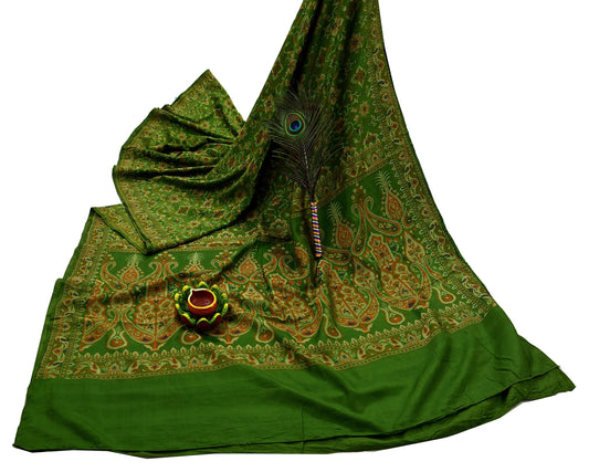 Indian Vintage Sari Green 100% Pure Silk Hand Woven Sarees Craft Fabric 5Yd Ethnic Sewing Dress making Crafting Quilting Upcycle