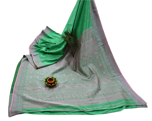 Indian Vintage Sari Green 100% Pure Silk Hand Woven Sarees Craft Fabric 5Yd Ethnic Sewing Dress making Crafting Quilting Upcycle