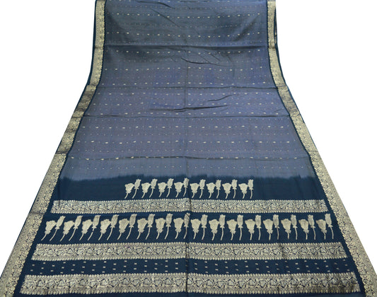 Indian Vintage Saree Gray & Blue Hand Woven Pure Silk Indian Sari Fabric 5Yard Silk Sari Ethnic Floral Golden Zari