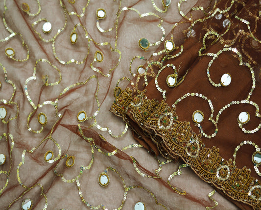 Indian Vintage Sari Maroon Net/Mesh Hand Embroidered Sarees Craft Fabric 6Yd Sewing Soft Zardozi/Dabka Zari Sequins Wedding sarees
