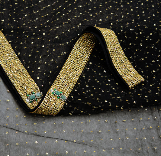 Indian Vintage Sari Black Heavy Pure Crepe Silk Hand Embroidered Saree Fabric 5Yard Ethnic Zardozi/ dabka Mess net