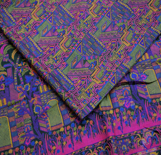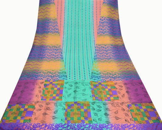 Indian Vintage Multi Saree 100% Pure Silk Printed Sari Craft Fabric 5yd Sewing Dress Making Soft Floral Crafting Quilting Upcycle