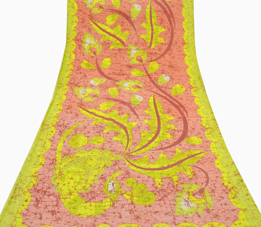 EXCELLENT QUALITY Indian Vintage Orange & Green Saree Pure Crepe Silk Printed Sari Craft Fabric 5yd Sewing Floral Soft Wrap Dress making