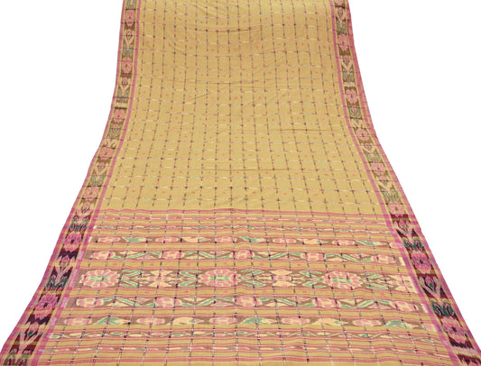 Indian Vintage Sarees Beige Pure Cotton Hand woven Sambalpuri Ikat sari Craft Fabric 5Yd Ethnic Chackra Border Dress Making Quilting