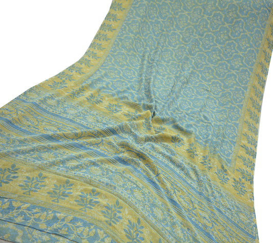 Women Vintage Blue Saree Pure Chiffon Silk Printed Sari Craft Fabric Sewing 5Yd Soft Dress Making Floral Crafting Upcycle Quilting