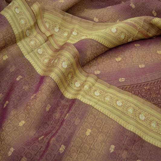Indian Vintage Sari Brown Heavy Wedding Pure Satin Silk Woven Brocade Tanchoi Sarees Golden Zari 5Yd Dress Making Crafting Quilting