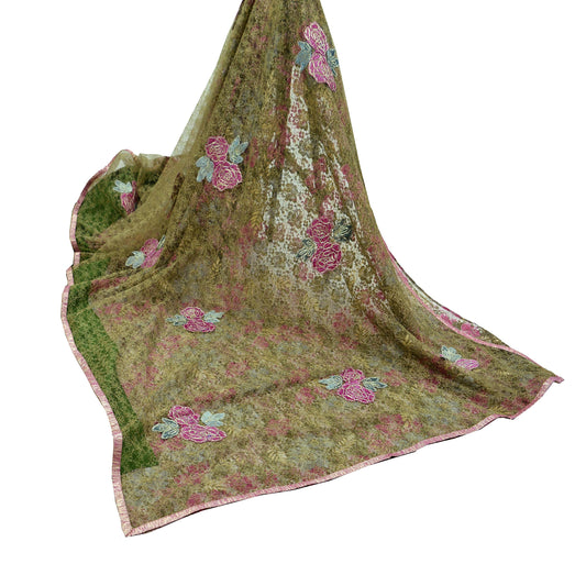 Indian Vintage Brown & Rusty Dupatta Pure Chiffon silk Long Stole Hand Embroidered Scarves Stole Veil Wrap Zari Zardozi