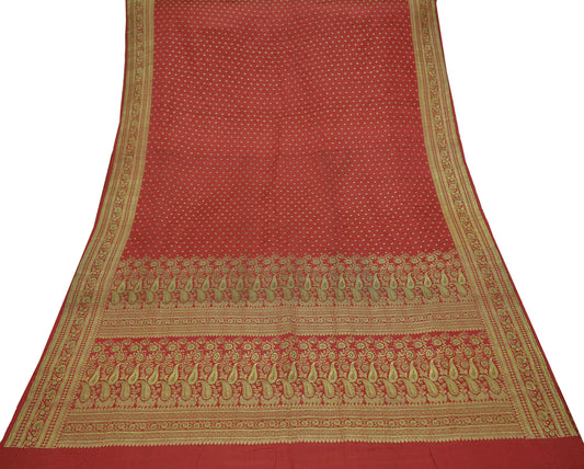 Indian Vintage Heavy Wedding Sari Red Pure Satin Silk Woven Brocade Banarasi Sarees Zari 5Yd Ethnic Craft fabric Dress making Crafting Used