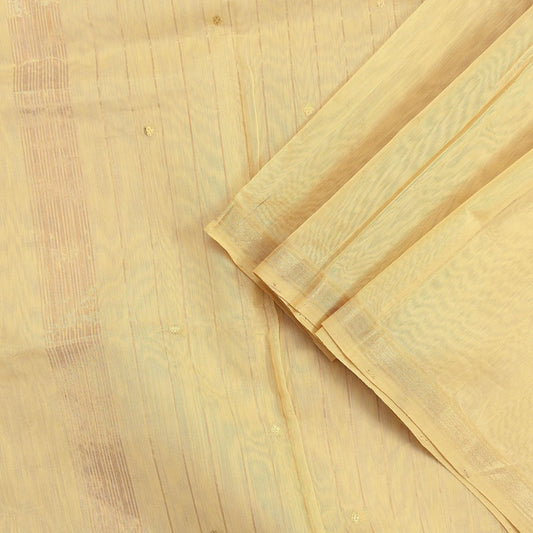 Indian Vintage Dupatta Beige Long Stole Printed Woven Chanderi Cotton Scarves Veil Golden Zari Soft Stripes Design