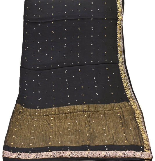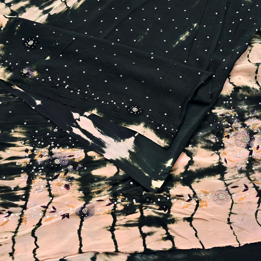 Indian Vintage black & peach Saree Pure Crepe Silk Hand Embroidered Tie-Dye Sari Fabric 5yard Sewing Craft Fabric Ethnic zari