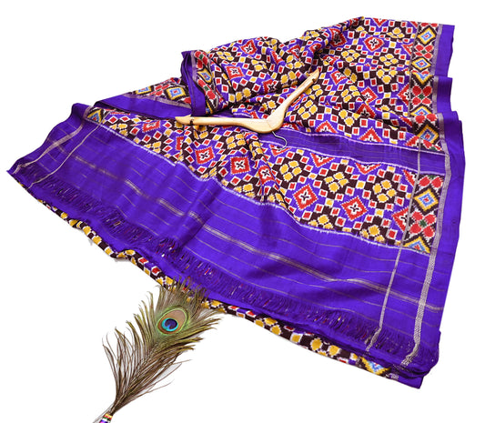 Indian Antique Vintage Blue Sari Hand Woven Double Ikat Patan Patola Sarees 100% Pure Silk Craft Fabric 5Yd Dress Making Sewing For wearing