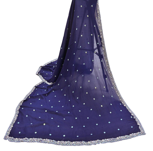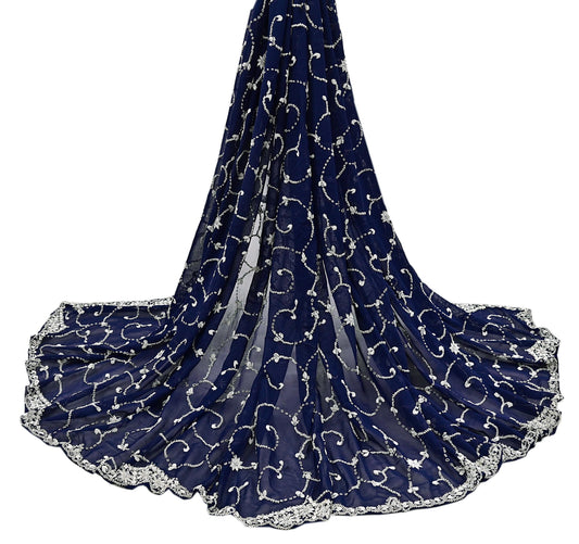 Indian Vintage Heavy Blue Dupatta Georgette Long Stole Hand Embroidered Scarf Zari Zardozi Wedding/ Bridal Veil Hijab