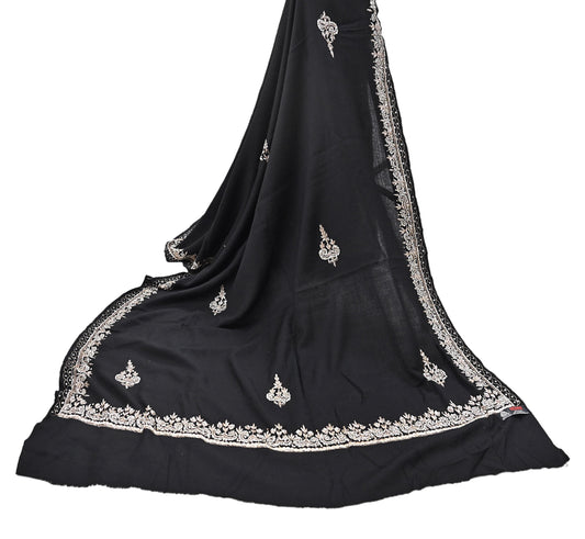 Vintage Shawl Black Pure Woolen Shawl Handmade Embroidered Long Throw Stole Warm Stole Floral Design Zardozi/dabka