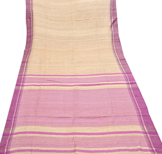 Indian Vintage Heavy Sari Beige & Pink Pure Khadi Silk Handloom Saree Craft Fabric 5yd Ethnic Wear Dress making For Crafting Quilting