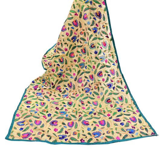 Indian Vintage Dupatta Beige Long Stole Chanderi Hand Embroidered Phulkari Stole Scarves Party wear Veil Hijab Wrap Scarf