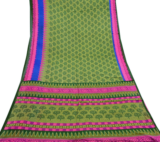 Indian Vintage Sari Green & Blue Pure Cotton Printed Sarees Craft Fabric 5Yd Soft Sewing Sarong Wrap Boho Floral Quilting Upcycle Crafting