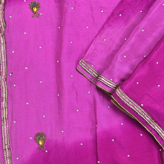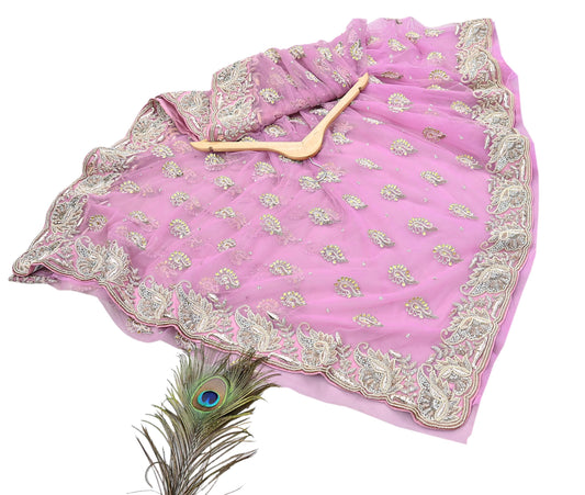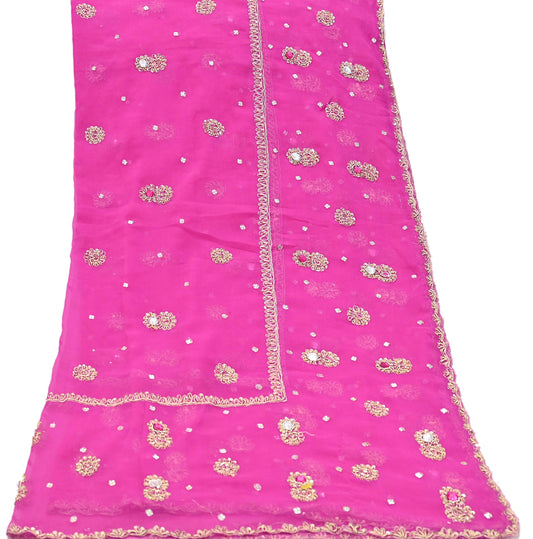 Indian Vintage Pink Dupatta Pure Georgette silk Long Stole Hand Embroidered Scarves Stole Veil Wrap Sequins Dabka/ Zardozi