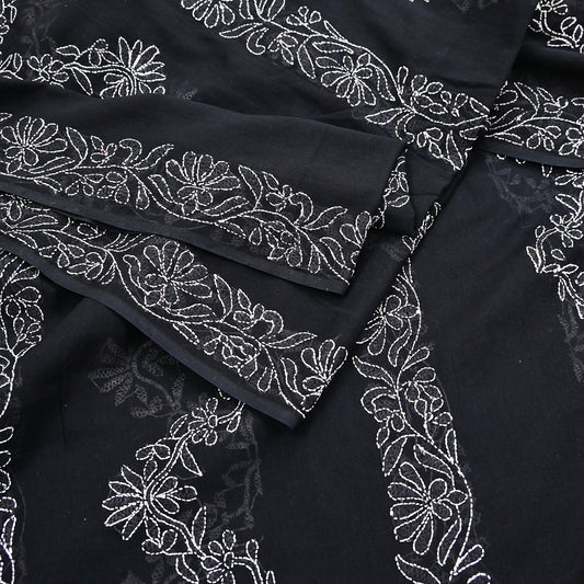 Indian Vintage Dupatta Black Long Stole Cotton Handmade Chikankari Scarves Veil Scarf Wrap Hippie Boho Soft