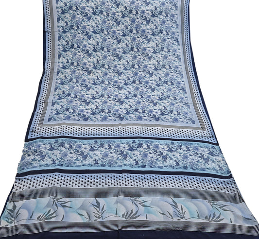 Indian Vintage blue & Ivory Pure Crepe Silk Saree Floral Print 5 Yards Soft Sewing Fabric for Dressmaking, Quilting, Crafting Upcycling