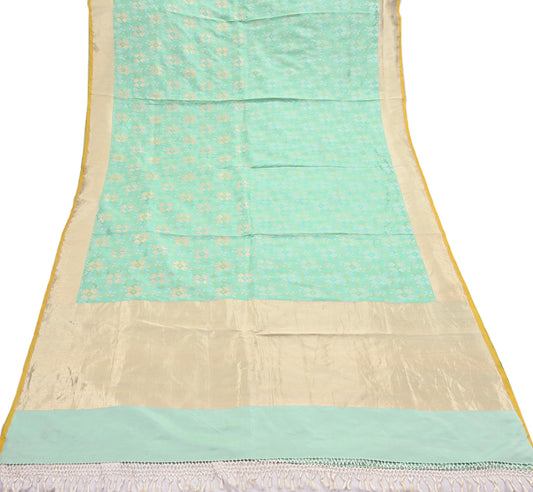 Indian Vintage Green & Yellow Saree Pure Woolen Woven Printed Sari Warm Craft Fabric 6Yd Woven Border Dress making Crafting Dress Designing