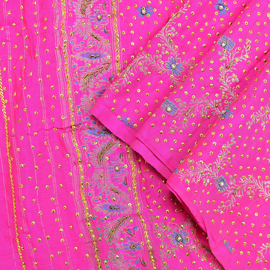 Indian Vintage Pink Dupatta Pure silk Long Stole Hand Embroidered Scarves Stole Veil Wrap Sequins Dabka/ Zardozi