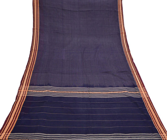 Vintage Sari Blue Pure Cotton Hand Woven Sarees Craft Fabric 5Yd Sewing Soft Crafting Dress making Upcycle Quilting Upcycle Zari Border