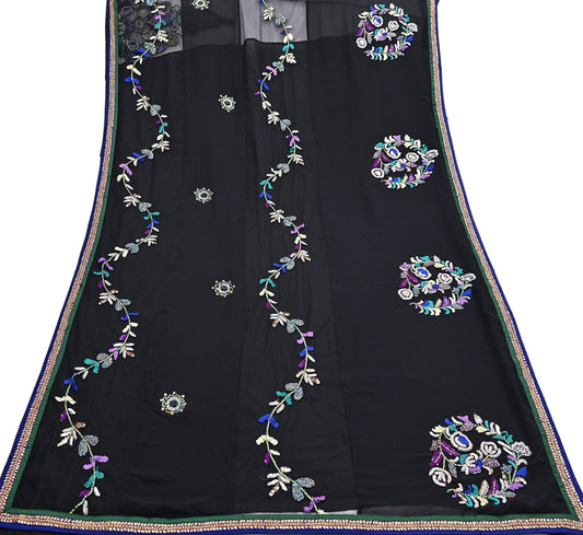 Indian Vintage Black Dupatta Pure silk Long Stole Hand Embroidered Scarves Stole Veil Wrap Sequins