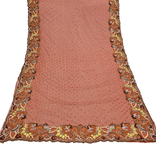 Indian Pre-owned Sari Pink Net/Mesh Hand Embroidered Anamika Khanna Designer Sarees Ethnic 6Yd Sewing Zardozi/Dabka Zari Wedding Sarees